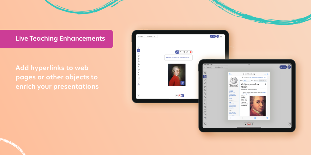 - Teach live with the convenient option of adding hyperlinks to your learning materials. Whenever you’re giving a lesson and find you need a bit more information, you can use hyperlinks to go right to the live website and look up anything you need – in real time!