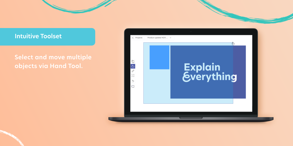 - How many times have you tried to group objects with the Hand Tool simply by selecting them? That just seems intuitive, right? This is why this feature is also coming to the Explain Everything whiteboard this year. You won’t have to select the Inspector first to be able to select and move multiple objects.