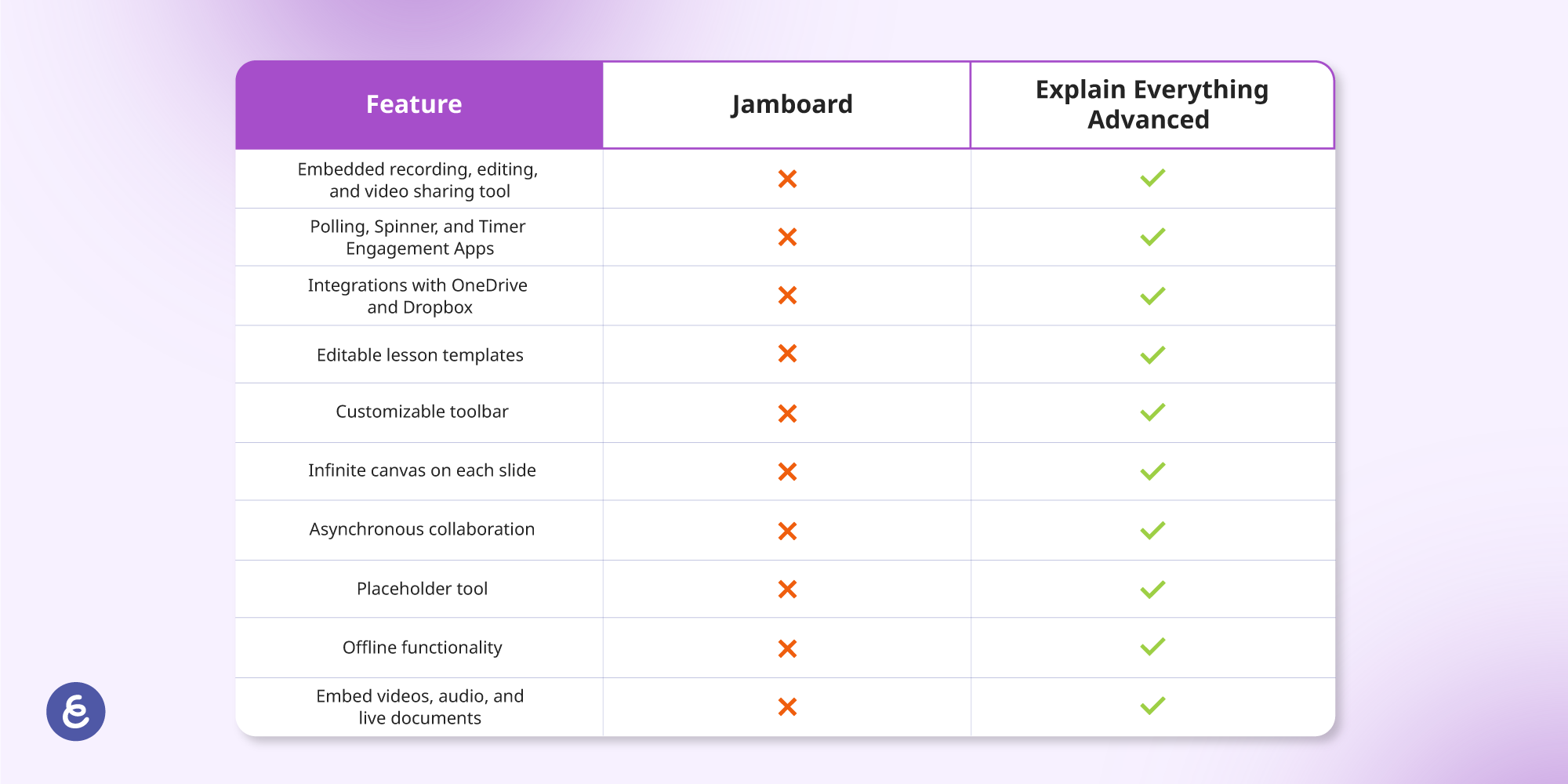 A feature-by-feature comparison: Explain Everything Advanced vs. Jamboard