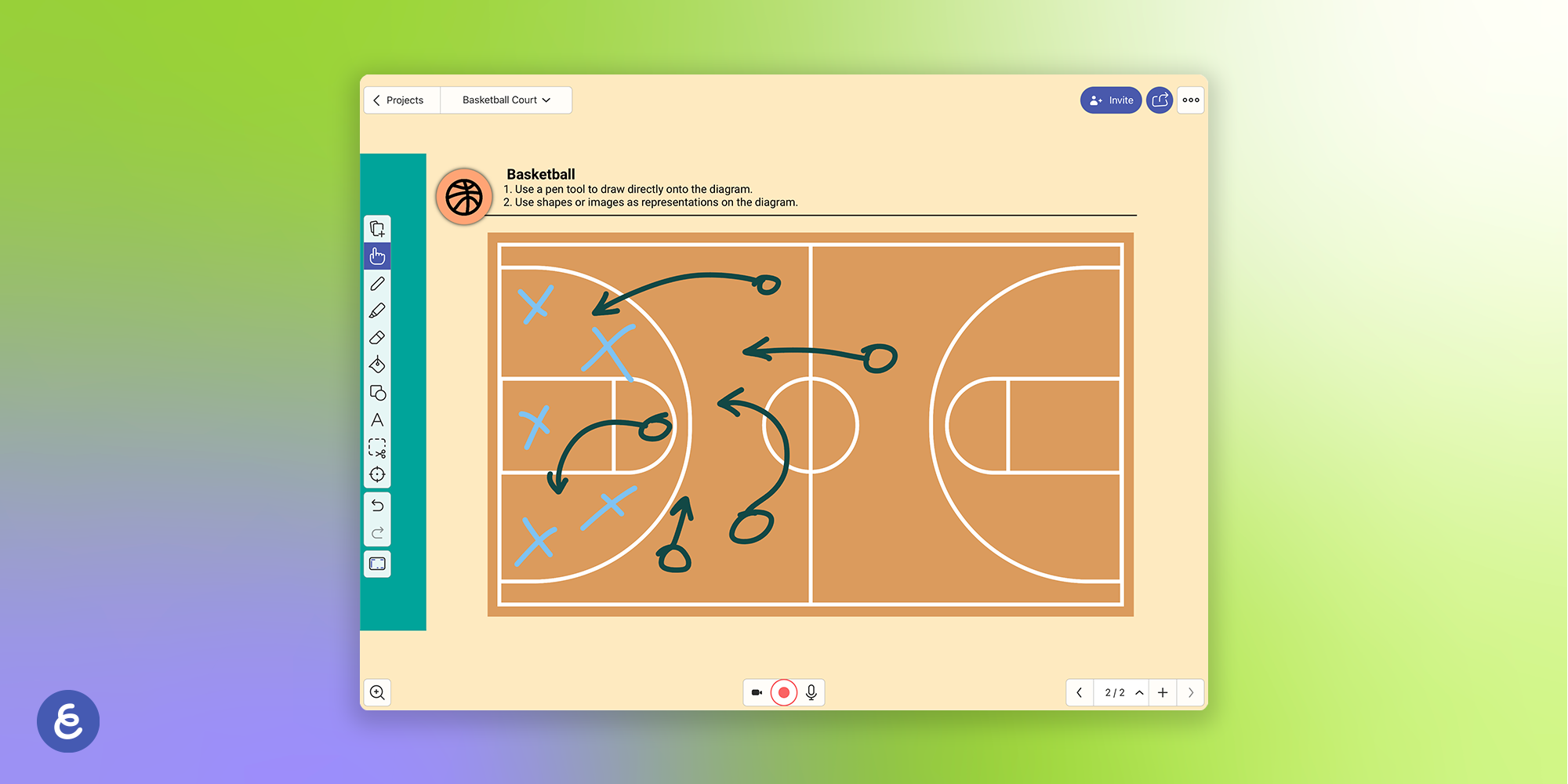 The “Basketball Court” template is a fantastic resource for students to learn about the game of basketball in an interactive way. This diagram allows students to explore the layout of a basketball court while learning the rules and key concepts of the game. It’s also perfect for student activities where they can plan and draw out their own basketball plays, helping them understand strategies and teamwork.